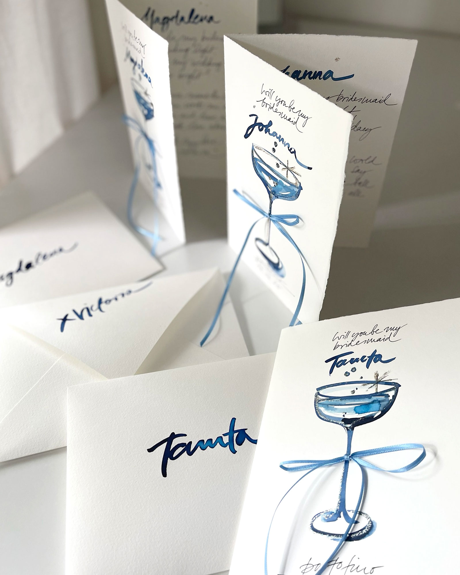 Von zarten Save the Date-Karten über handillustrierte Einladungen bis hin zu Tischkarten und Anfahrtskizzen – jedes einzelne Stück wird von Katja Foos mit Herzblut, feinen Illustrationen und ihrer unverwechselbaren Handschrift gestaltet. So entstehen kleine Kostbarkeiten, die nicht nur informieren, sondern berühren – wie handgeschriebene Liebesbriefe, die ewig bleiben.